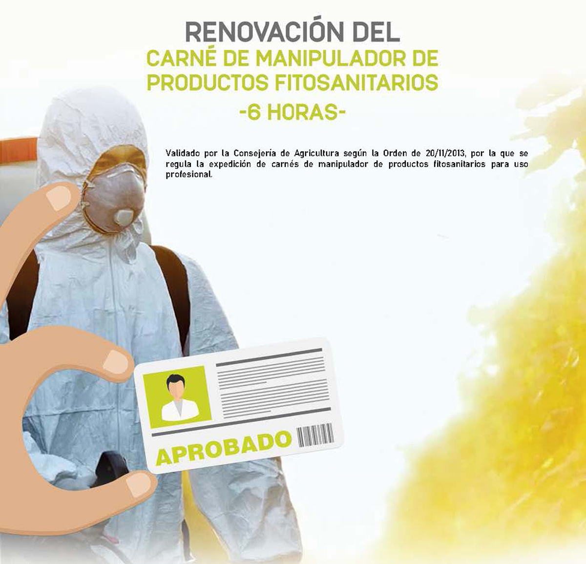 El curso está validado por la Consejería de Agricultura según la Orden de 20/11/2013, por la que se regula la expedición de carnés de manipulador de productos fitosanitarios para uso profesional.
