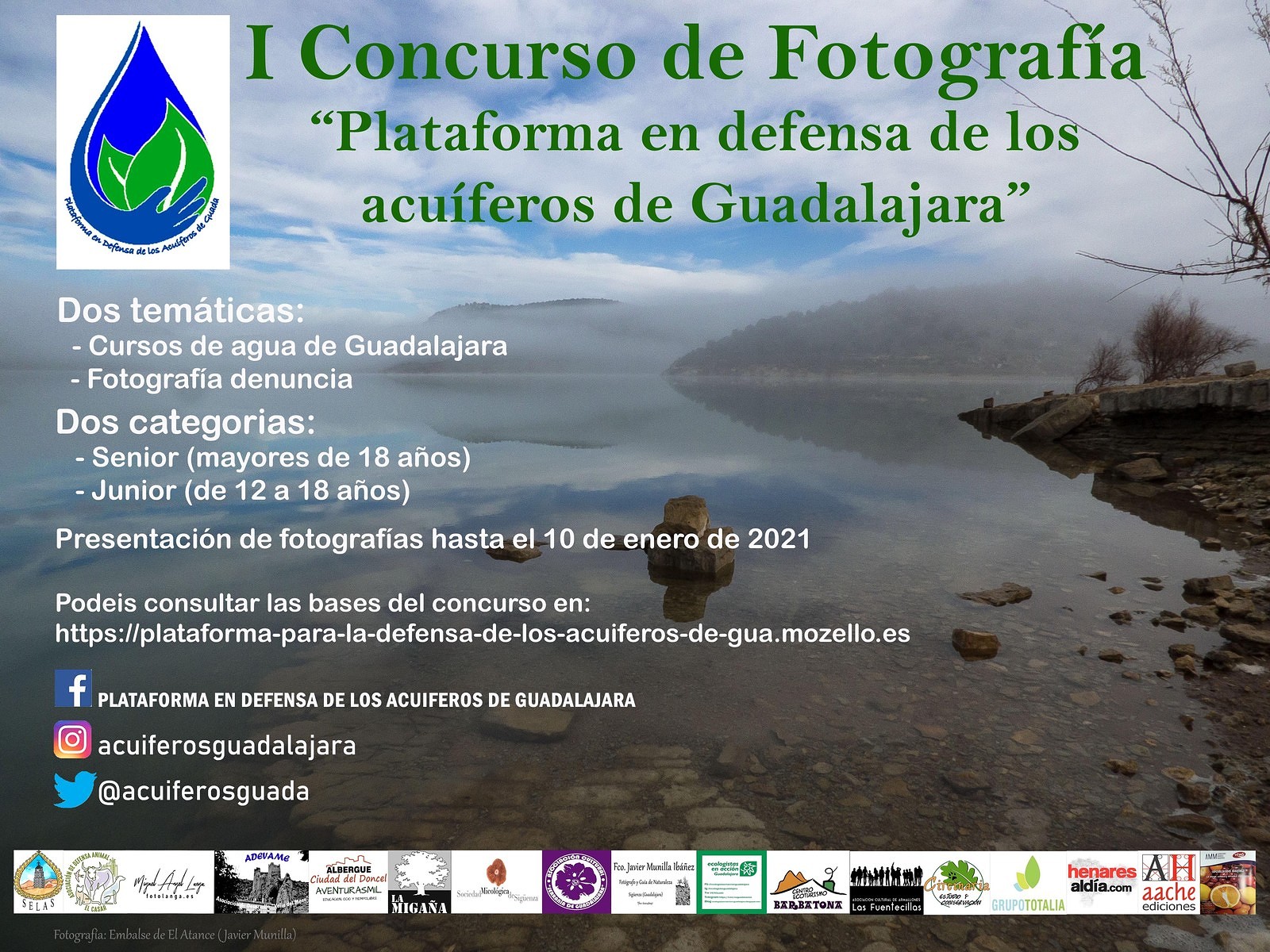 La Plataforma en defensa de los acuíferos de Guadalajara ha convocado un concurso fotográfico, cuyo plazo de presentación de trabajos finalizará el 10 de enero. Tendrá tres categorías, dos de adultos y una infantil todas ellas relacionadas con las masas de agua de Guadalajara, ríos, lagos, lagunas, o los embalses.