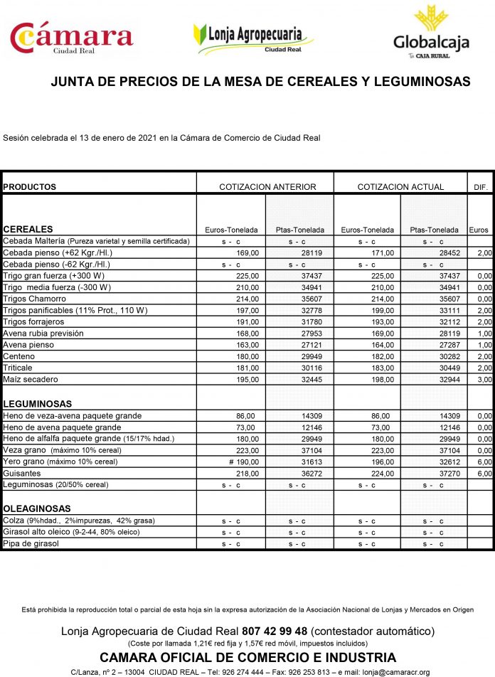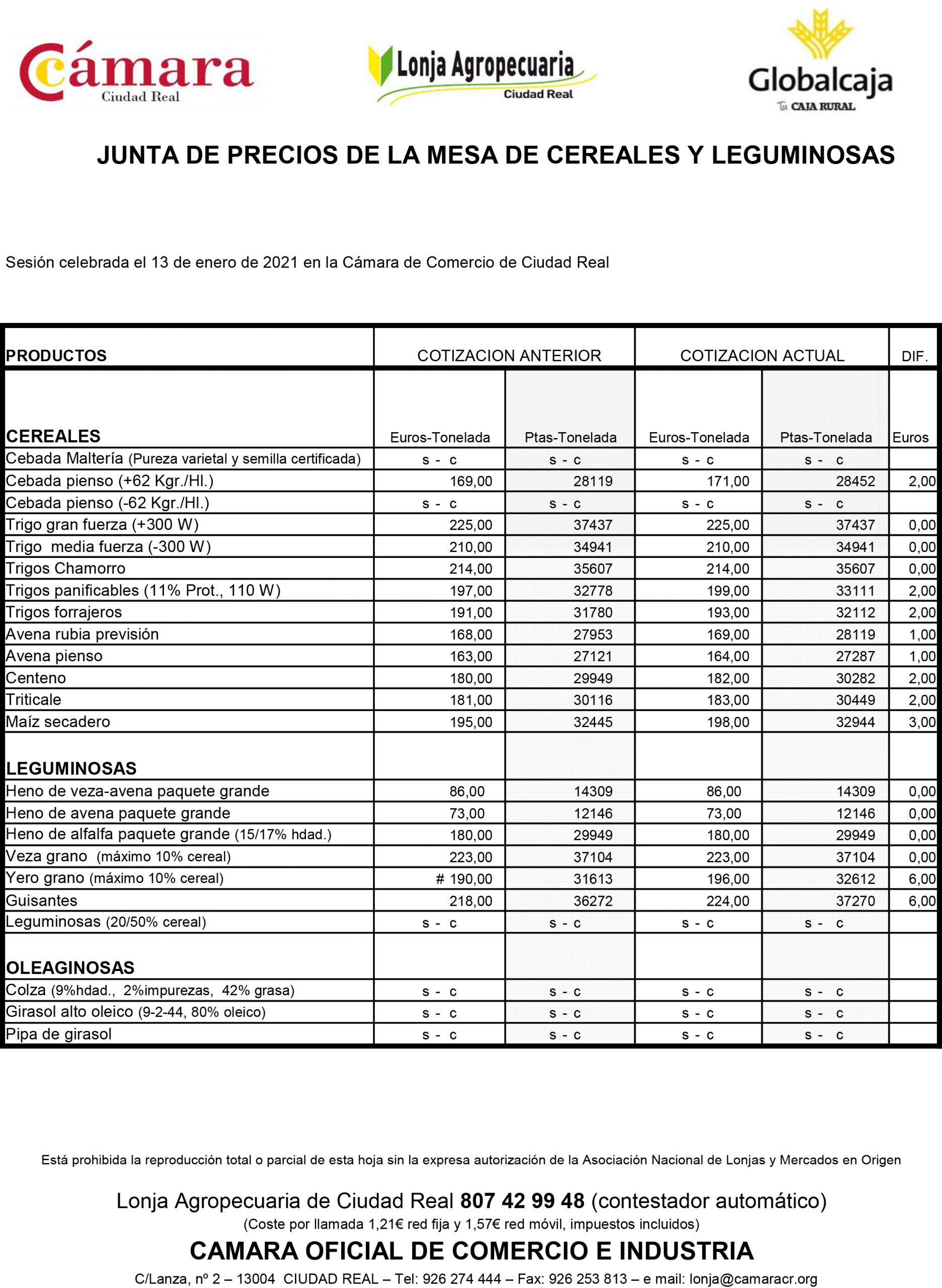 Lonja de Ciudad Real. Cereales. 13-enero-2021