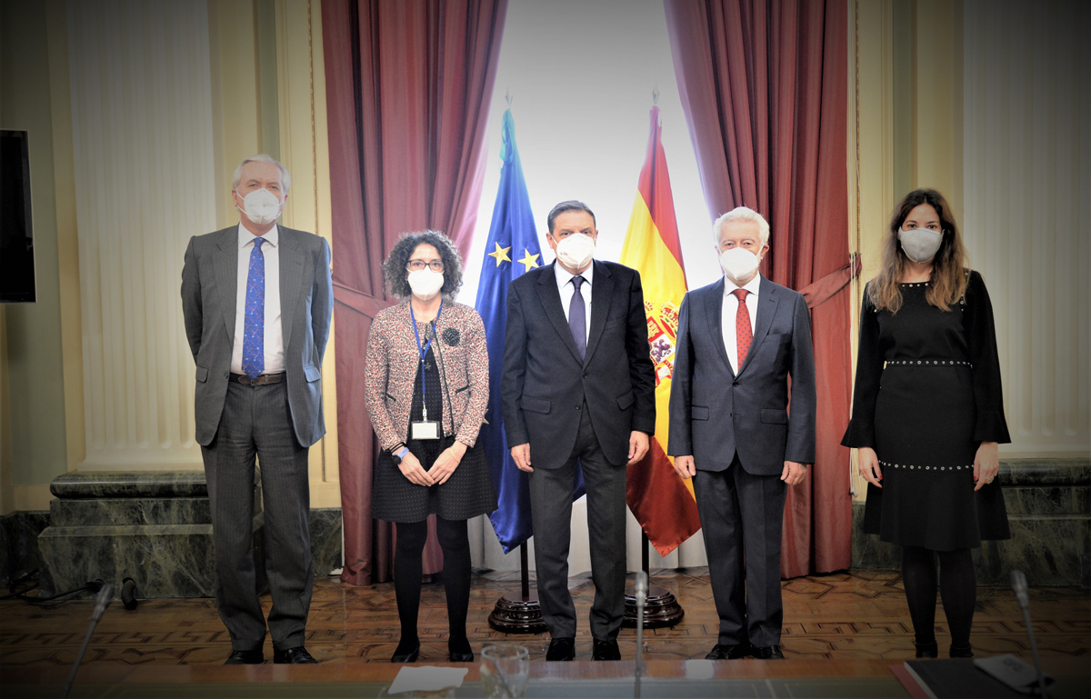 El ministro de Agricultura, Pesca y Alimentación, Luis Planas, ha recibido este martes en sede ministerial, a Susana Humanes, recién nombrada presidenta de la Asociación Nacional de Ingenieros Agrónomos del Estado (ANIADE), tras la jubilación de su antecesor, José Luis Montero, que también ha estado presente en el encuentro.