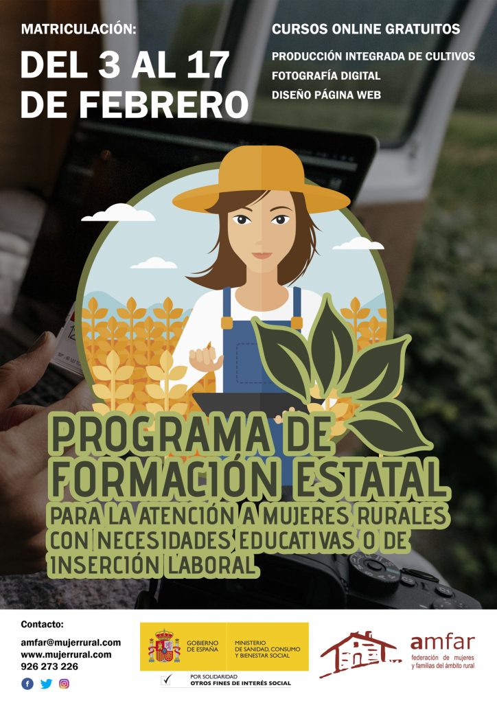 La Federación de Mujeres y Familias del Ámbito Rural, AMFAR, abre desde hoy, miércoles 3 de febrero, el plazo de matrícula para tres cursos de formación online con carácter gratuito.