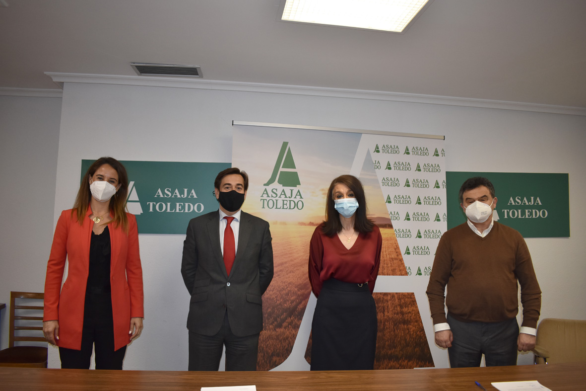 El convenio ha sido suscrito por el responsable Agro de La Mancha del Banco Santander, Pedro Bergillos Serrano, y por la presidenta de ASAJA Toledo, Blanca Corroto, que han estado acompañados por el responsable técnico de la PAC de la organización agraria, Isidoro Gómez, y por la directora de la Oficina Principal de la entidad financiera en Toledo, Virginia Lucas.