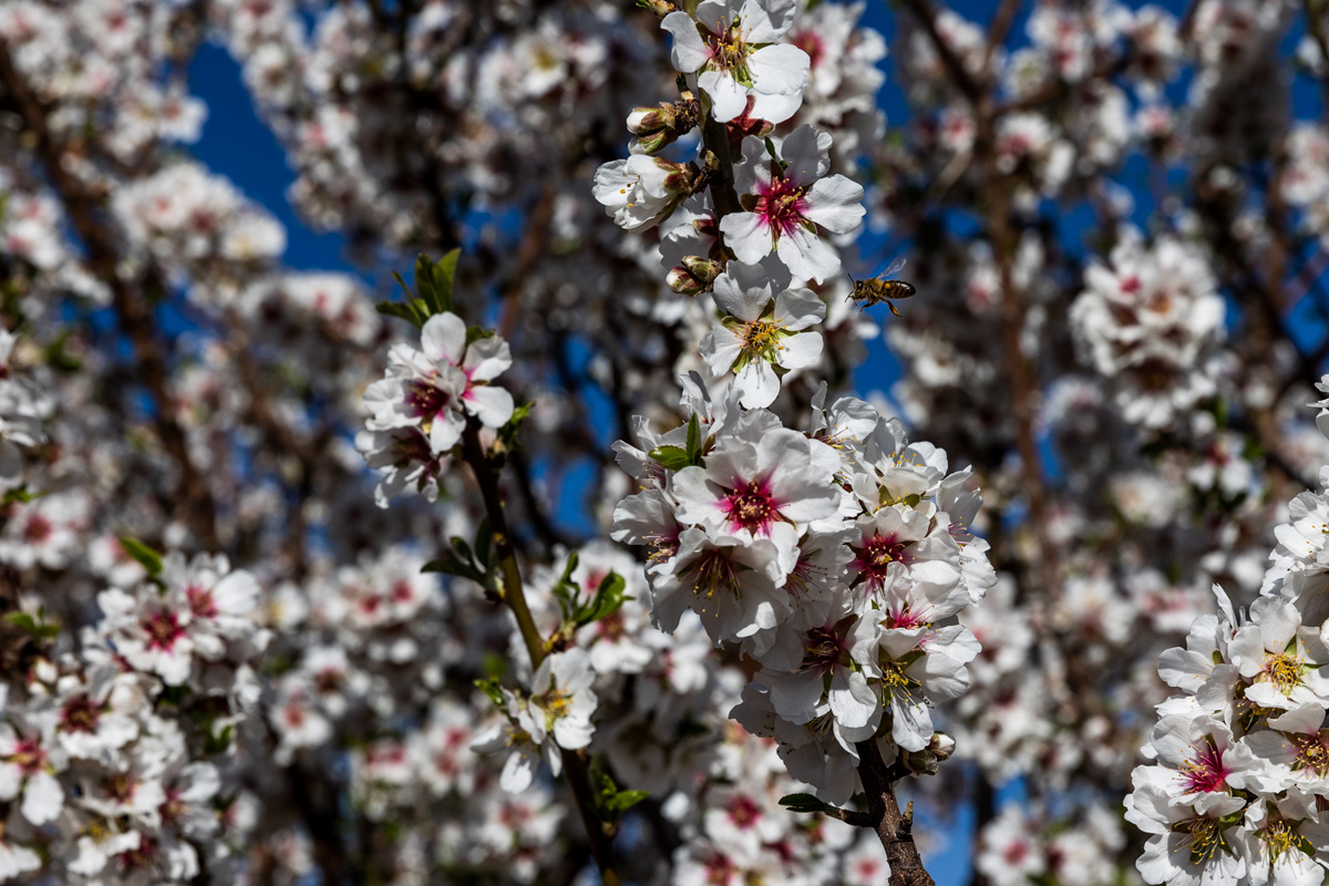 Una vez que almendros han florecido, estas flores pueden llegar a soportar hasta temperaturas de 3 grados bajo cero. Después llega el trabajo de los insectos polinizadores, quienes se encargan de que estos árboles den frutos. No es hasta unos seis meses después, cuando se pueden recoger las almendras y disfrutar de este fruto seco.