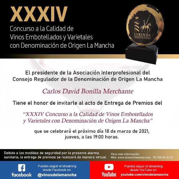 La Denominación de Orgien La Mancha entregará sus XXXIV Premios este jueves, 18 de marzo, a las 19:00 h., en una gala virtual y telemática. Una cita para los aficionados al vino, consumidores y bodegas que conocerán cuales han sido los vinos ganadores de unos galardones, que en esta trigésimo cuarta edición, se han convertido ya en una referencia regional para el sector vitivinícola.