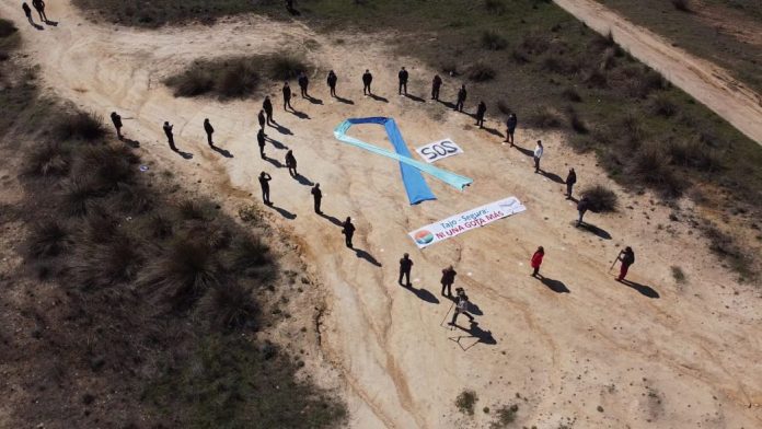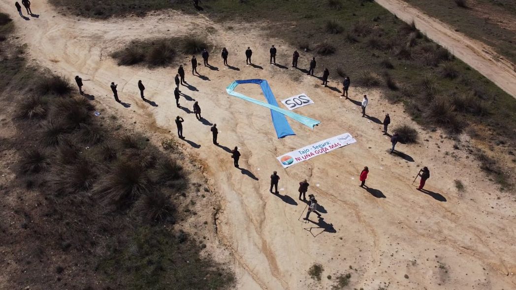 Los alcaldes de la Asociación de Municipios Ribereños de los Embalses de Entrepeñas y Buendía se han agrupado este sábado en un acto simbólico en torno a un gigantesco lazo en dos tonos de azul para lanzar un mensaje claro al Ministerio para la Transición Ecológica y el Reto Demográfico: “Este año hay que cumplir la sentencia del Tribunal Supremo y poner fin a la sed insaciable de la agroindustria del Levante”. Los Ribereños reclaman una lámina mínima estable de 1000 hectómetros cúbicos, alrededor del cuarenta por ciento de la capacidad de los embalses