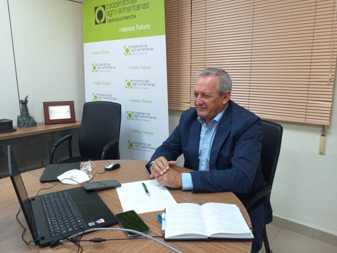 El presidente de Cooperativas Agro-alimentarias Castilla-La Mancha, Ángel Villafranca, ha puesto en valor hoy durante la celebración del evento online con motivo del “Día Mundial del Agua” organizado por la Agencia del Agua de Castilla-La Mancha bajo el lema “Valoremos el agua”, el papel fundamental que tienen los agricultores, ganaderos y sus cooperativas en el futuro de Castilla-La Mancha. Villafranca explicaba que en función de los usos y de la gestión que se haga del agua, y muy especialmente, sobre su uso en la agricultura y ganadería, de ello dependerá la riqueza en el medio rural, en Castilla-La Mancha.