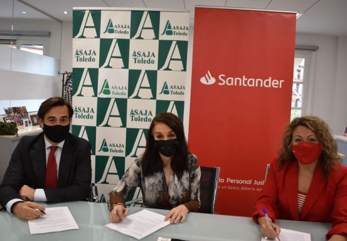 El convenio de colaboración, que se extenderá hasta el 31 de diciembre de 2021, ha sido suscrito por la directora territorial de Banco Santander en La Mancha, Sonia Colomar, y por la presidenta de ASAJA Toledo, Blanca Corroto, acompañados por el responsable Agro Santander La Mancha, Pedro Bergillos.