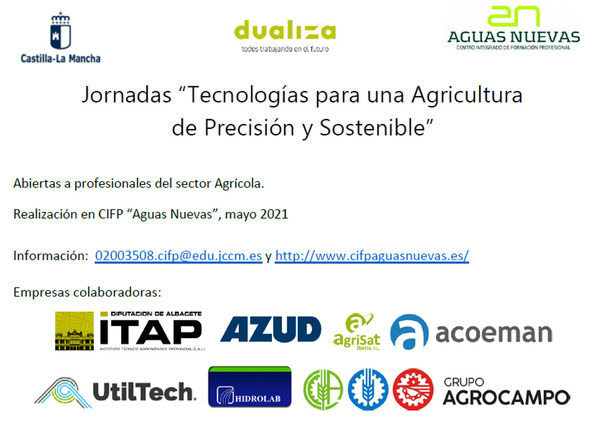El Centro Integrado de Formación Profesional CIFP «Aguas Nuevas» va a realizar en mayo unas jornadas sobre “Tecnologías para una Agricultura de Precisión y Sostenible”, dirigidas tanto a sus alumnos y profesores como a profesionales del sector agrícola.