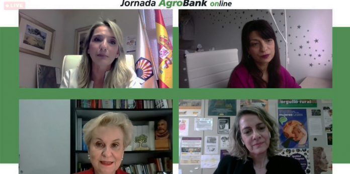 La presidenta nacional de AFAMMER, Carmen Quintanilla, aborda los logros y los retos alcanzados por la mujer rural en la Jornada organizada por Agrobank junto con la directora de la Escuela Técnica Superior de Ingeniería Agronómica y de Montes de la Universidad de Córdoba, Rosa Gallardo; la directora de desarrollo rural, Isabel Bombal y la presidenta de FADEMUR; Teresa López.