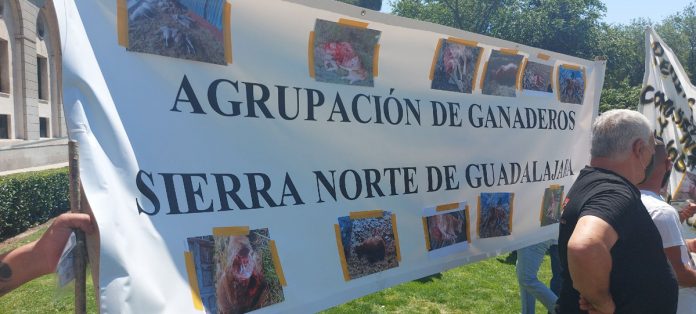 Los ganaderos de Guadalajara participaron en la concentración del miércoles en Madrid frente a la sede del Ministerio de Transición Ecológico y Reto Demográfico, (MITECO), convocados por la Plataforma en Defensa de la Gestión del Lobo -Ganader@Viv@.