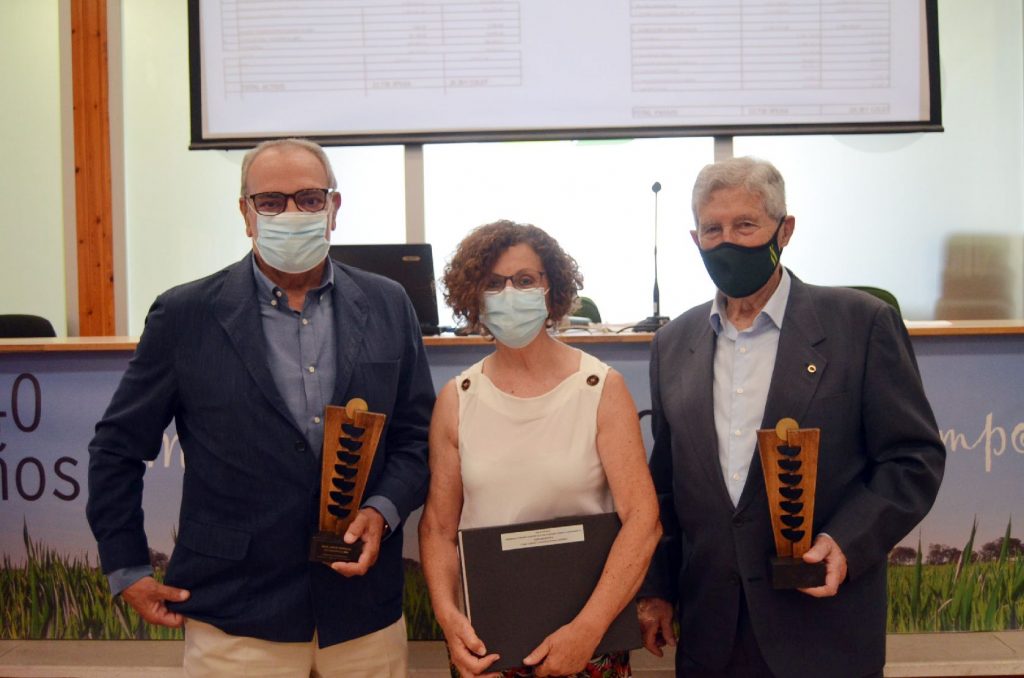 Los dos homenajeados han recibido una escultura de Juan Carlos Fuentes Dosdados, que representa una espiga en dos planos con una esfera dorada simbolizando el sol y todos sus aspectos positivos.