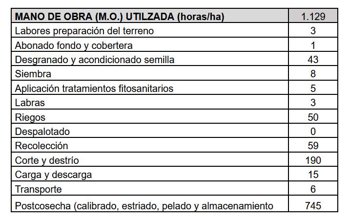 -Se generan, de media, unos 141 jornales (1130 horas) por cada hectárea de ajo cultivada.