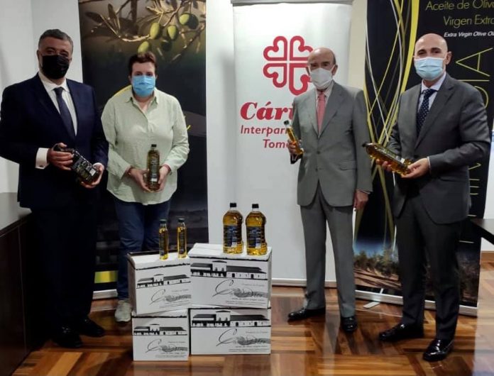 Virgen de las Viñas Bodega y Almazara y CaixaBank han realizado una donación a Cáritas Tomelloso de más de 1.600 litros de Aceite de Oliva Virgen Extra envasado para ayudar a las familias más desfavorecidas de la localidad manchega.