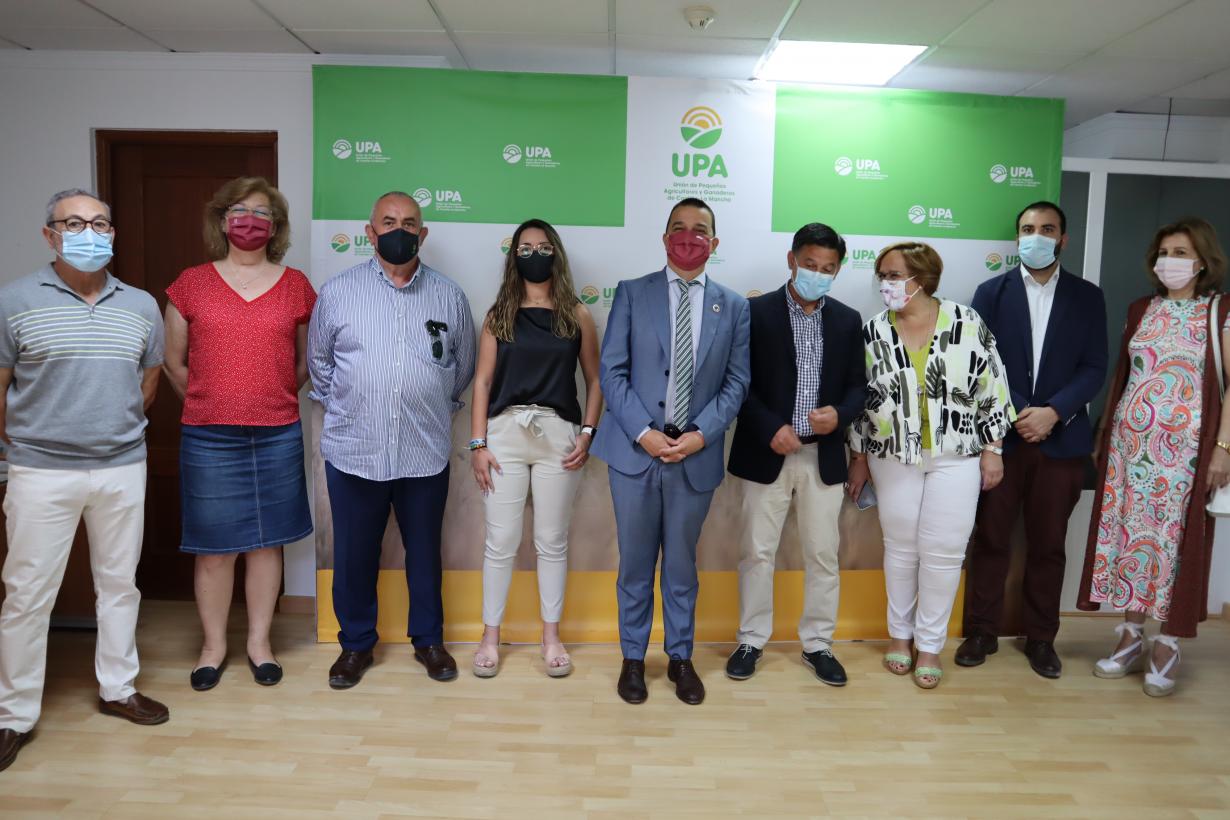 El consejero de Agricultura, Agua y Desarrollo Rural de Castilla-La Mancha, Francisco Martínez Arroyo, y el secretario general de UPA Castilla-La Mancha, Julián Morcillo, han inaugurado este miércoles la nueva oficina de la Unión de Pequeños Agricultores y Ganaderos en Tomelloso (Ciudad Real), ubicada en la céntrica calle Campo.