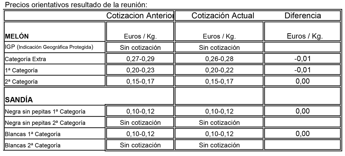 Los precios han registrado repeticiones en las cotizaciones de la sandía y bajadas en las de los melones.