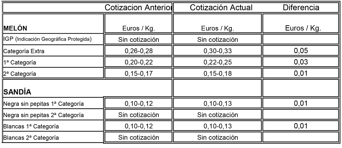 Los precios han registrado ligeras subidas tanto para los precios del melón como de la sandía: