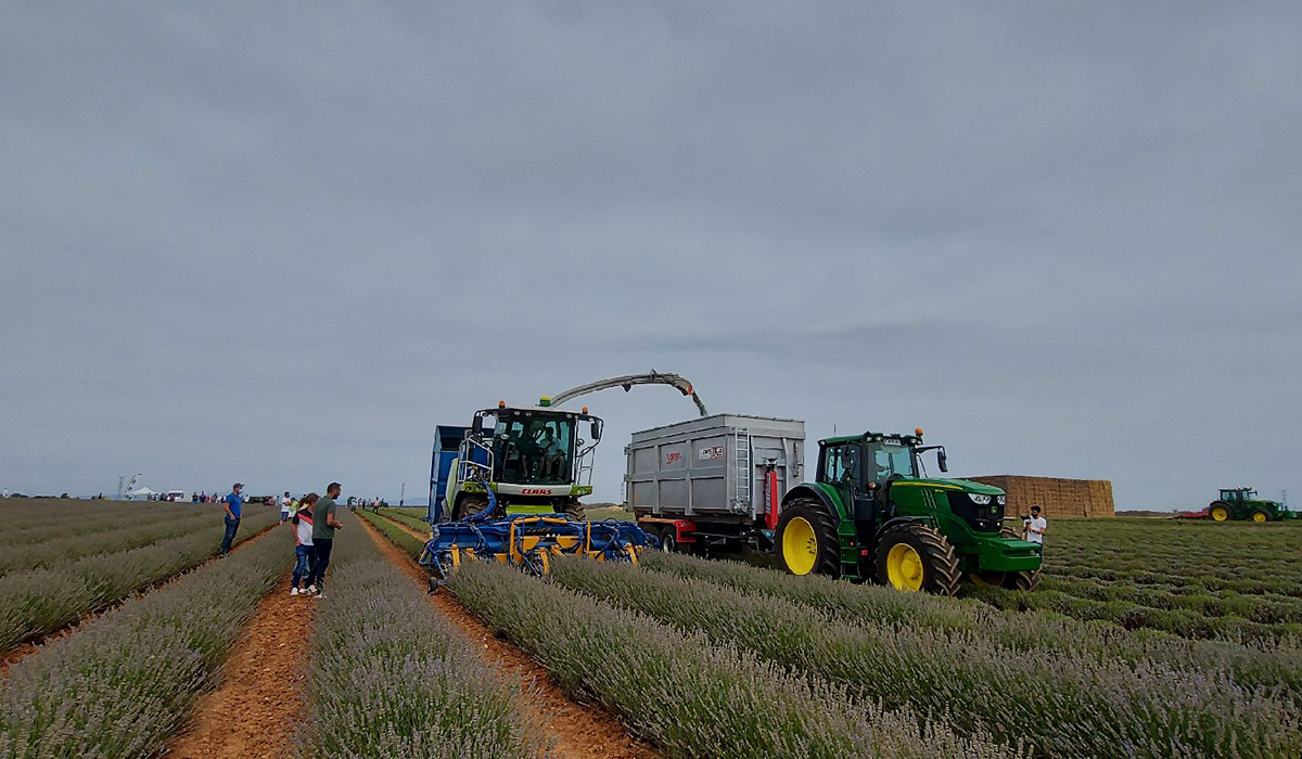La Jornada de Agricultura de Precisión en campos de lavanda ha reunido este martes a más de 60 personas en Almadrones (Guadalajara), que han podido ver el funcionamiento y demostración de nuevas tecnologías aplicadas a un tractor labrando y a una segadora de lavanda.