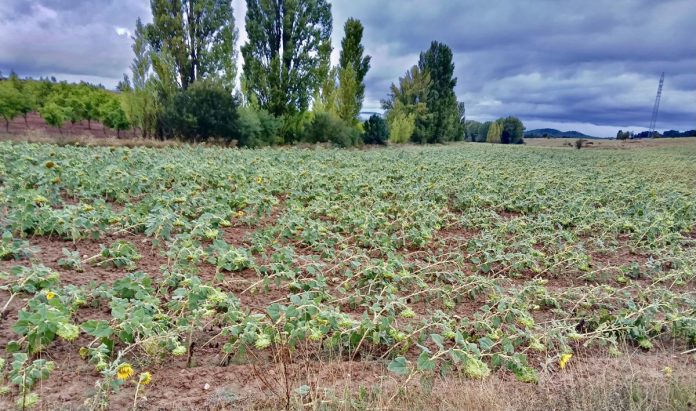 Además, en algunos casos, la intensidad con la que cayó el agua en la tarde noche del martes tumbó parte de los girasoles en la zona de Zarzuela, en unas imágenes captadas por César.