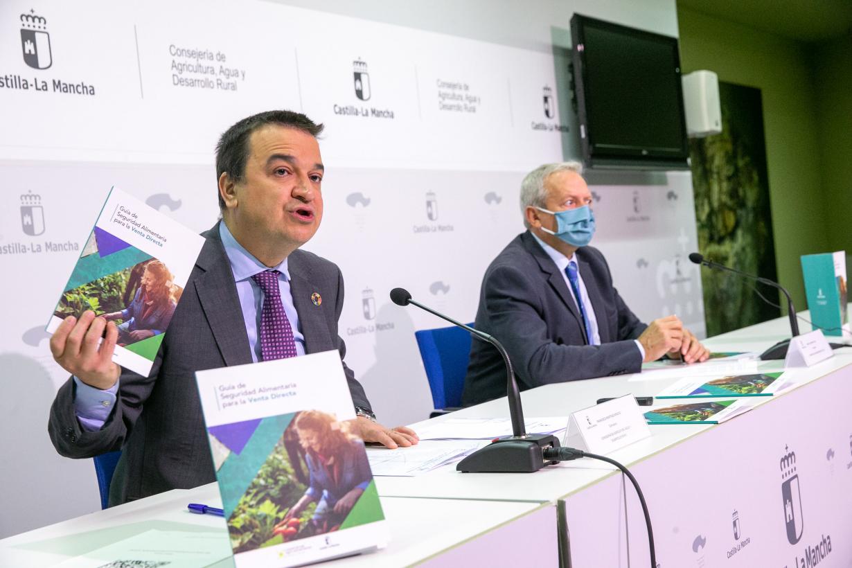Así lo ha manifestado el consejero de Agricultura, Agua y Desarrollo Rural, Francisco Martínez Arroyo, durante la convocatoria en la que se ha presentado la Guía de Seguridad Alimentaria para la Venta Directa, junto al presidente de Cooperativas Agroalimentarias, Ángel Villafranca, entidad encargada de su elaboración.