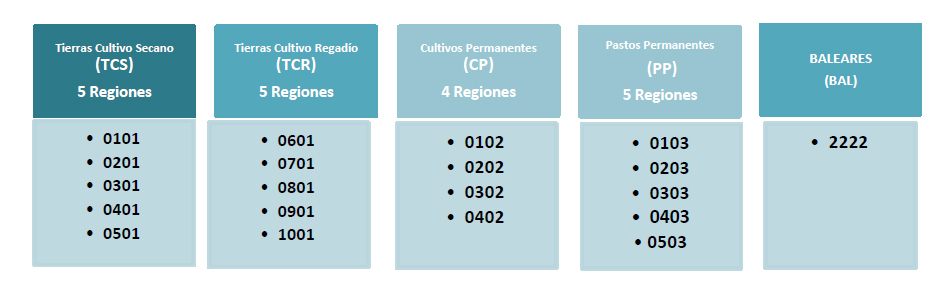El documento recoge que el modelo de regionalización pasará de las 50 regiones agronómicas actuales a 20, englobadas en 5 grupos: Tierras de cultivo de secano; Tierras de cultivo de regadío; Cultivos permanentes; Pastos permanentes y Región balear.
