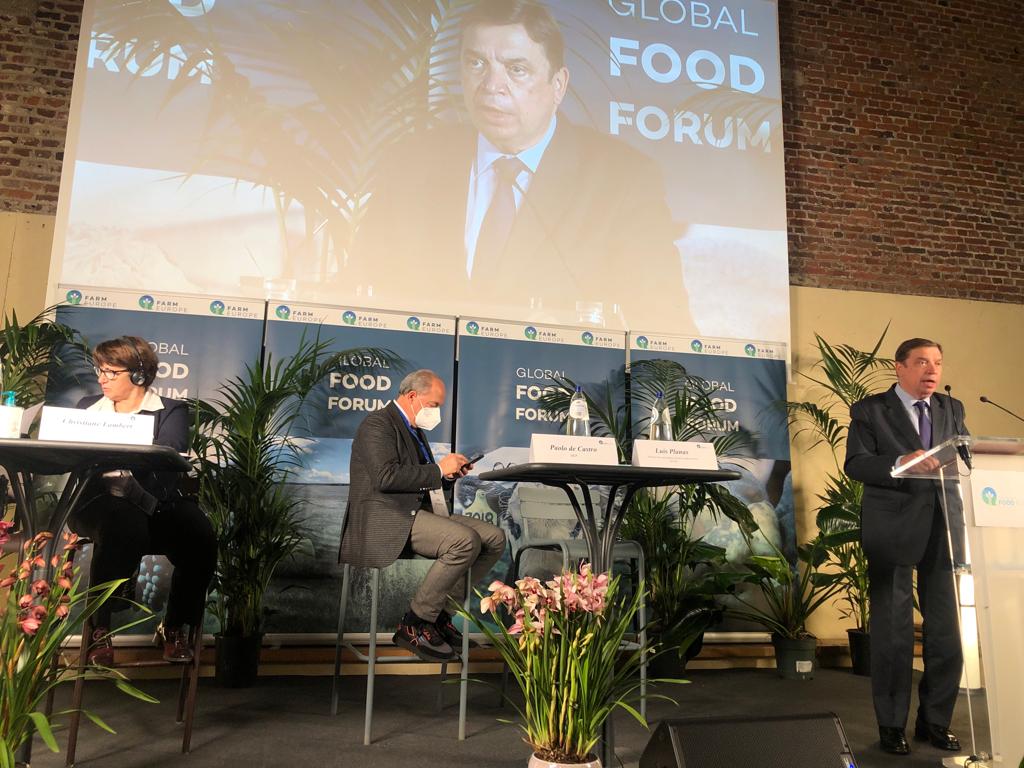 En el acto de clausura del encuentro “Global Food Forum”, celebrado en Bruselas, el ministro español ha asegurado que las políticas europeas como el Pacto Verde o las estrategias de Biodiversidad y De la Granja a la Mesa recogen los principios que deben guiar las políticas agrarias, principios que deben tener en cuenta la rentabilidad de las explotaciones.