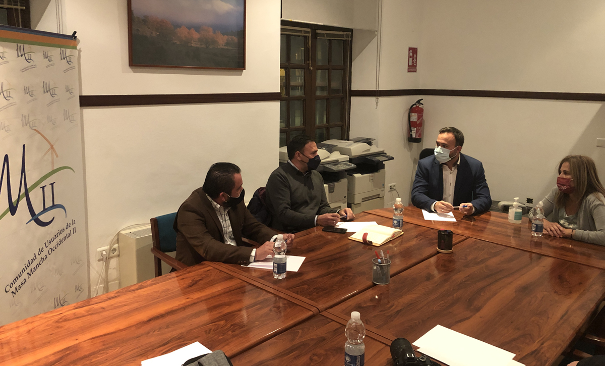 El presidente de la Comunidad de Usuarios de Aguas Subterráneas (CUAS) Mancha Occidental II, José Joaquín Gómez, y el vicepresidente, Antonio Ortiz, han mantenido un encuentro con el portavoz del Grupo Municipal Popular en el Ayuntamiento de Tomelloso, Javier Navarro, y la concejala Eloísa Perales.