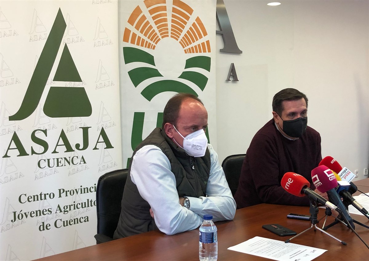 Los secretarios de ASAJA Cuenca y UPA en Cuenca, Manuel Torrero y Miguel Esponera, respectivamente, han explicado este jueves en rueda de prensa las razones que han llevado a las organizaciones a nivel nacional a salir de nuevo a la calle para reivindicar soluciones a los problemas del campo.