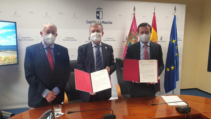 El Gobierno de Castilla-La Mancha ha suscrito con la Unión Española Fotovoltaica (UNEF), el protocolo que establece el marco general de actuación mediante el que las dos partes firmantes se comprometen a contribuir a alcanzar los objetivos de descarbonización de la economía regional a través del impulso de las energías renovables. El consejero de Desarrollo Sostenible, José Luis Escudero, y el director general de UNEF, José Donoso, han sido quienes han rubricado el mismo, tras una reunión a la que también ha asistido Manuel Guirao, director general de Transición Energética.