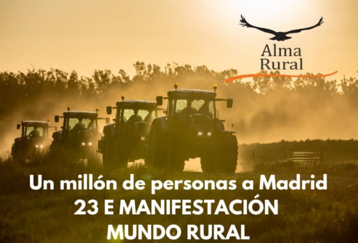 El domingo 23 de enero se celebrará en Madrid la ‘Gran Manifestación del Mundo Rural’, coordinada por ‘Alma Rural’, “como protesta por la situación que sufre el mundo rural y sus actividades, especialmente las labores desarrolladas por el sector primario”.