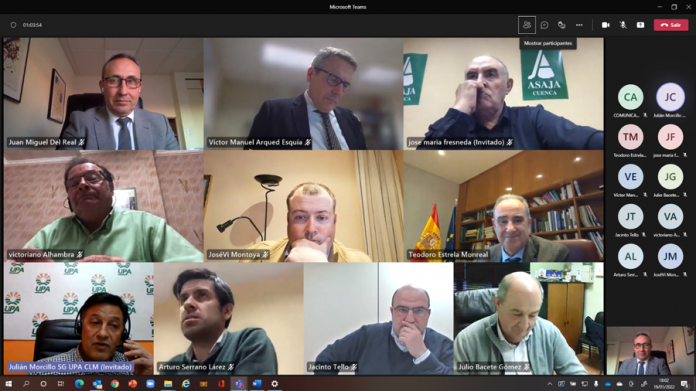 Representantes de las organizaciones agrarias ASAJA, COAG y UPA y Cooperativas Agroalimentarias de Castilla-La Mancha se han reunido on line con el director general del Agua del Ministerio para la Transición Ecológica y el Reto Democrático (MITECO), Teodoro Estrela, con el objetivo de modificar los planes hidrológicos de cuencas, pues considera que “atentan gravemente contra el sistema productivo de Castilla-La Mancha”. Estas organizaciones ya presentaron en diciembre un documento conjunto de alegaciones a los borradores de dichos planes.