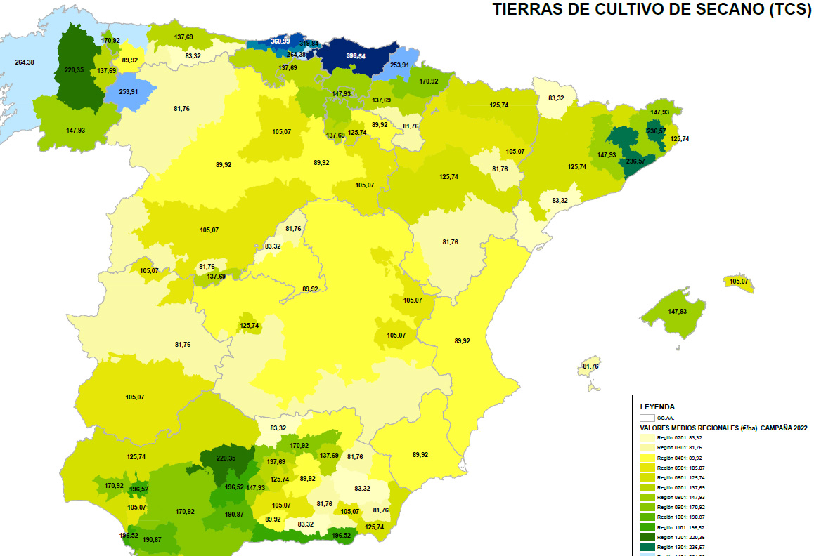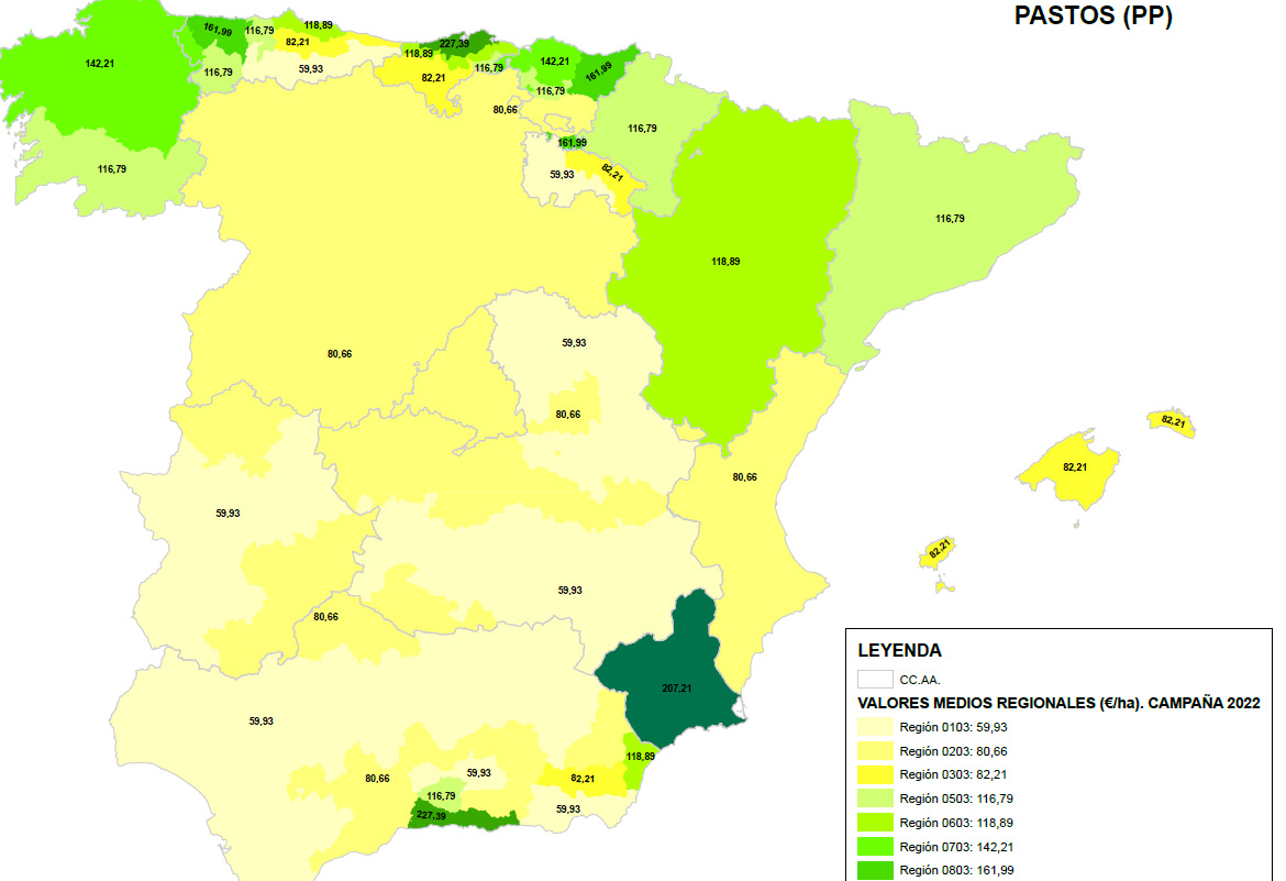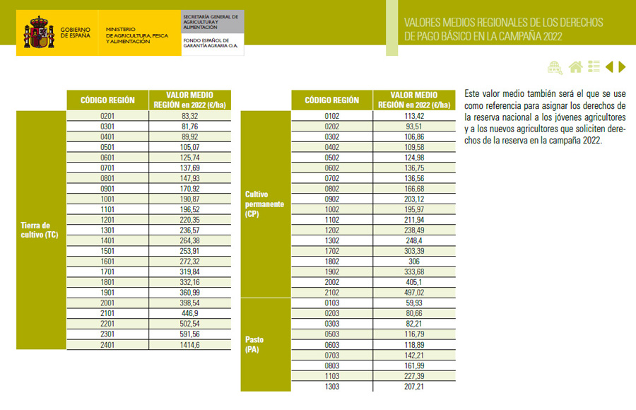 Como resultado de lo anterior, han sido calculados los valores medios regionales de los derechos de pago básico para la campaña 2022 en España siendo su valor: