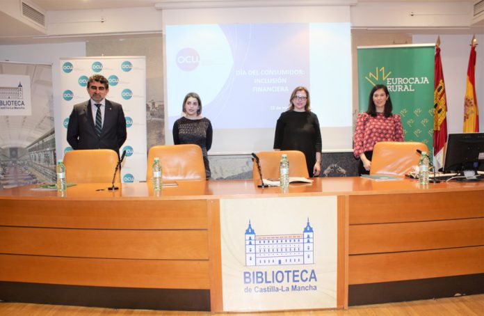 El director de la División de Relaciones Institucionales de Eurocaja Rural, Miguel Ángel Escalante Pinel, ha participado esta mañana en un debate en torno a la exclusión financiera organizado por la OCU, en el que se han hecho públicos los resultados de una encuesta realizada a 2007 vecinos de municipios de menos de 5.000 habitantes. La presentación de dichos datos ha corrido a cargo de Itziar Fernández de la Cruz, delegada de la OCU en Castilla – La Mancha y Eztizen Gregorio Rueda, del Departamento de Comunicación y Relaciones Institucionales a nivel nacional y portavoz de la OCU.