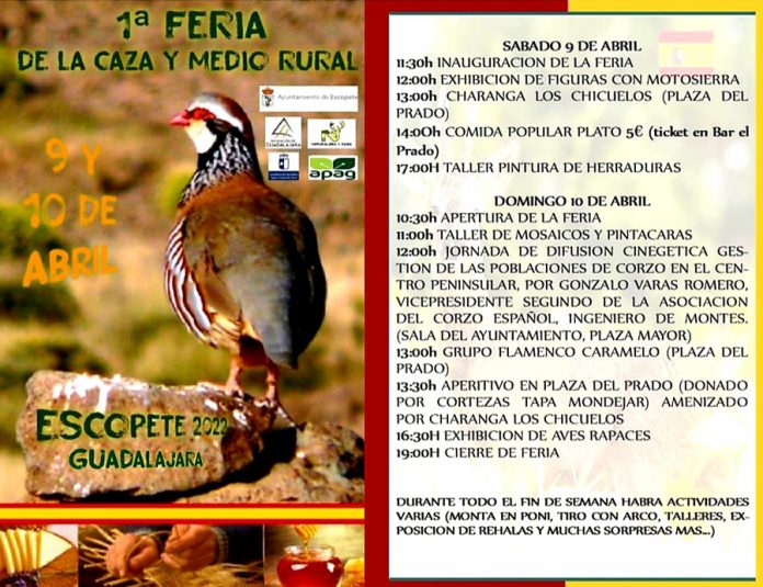 El Ayuntamiento de Escopete (Guadalajara), una pequeña población situada en la Baja Alcarria, celebrará los próximos 9 y 10 de abril la ‘Primera Feria de Caza y Medio Rural’.