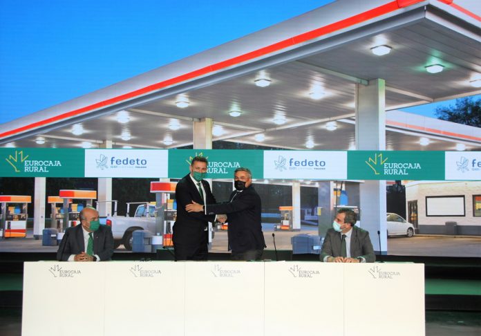 Eurocaja Rural ha suscrito este jueves un convenio pionero en materia financiera con la Federación Empresarial Toledana (Fedeto), con la finalidad de dar respuesta a la actual situación límite a la que están llegando muchos de sus asociados, en concreto quienes ostentan la titularidad de derechos de explotación de las instalaciones de suministro de combustibles y carburantes al por menor o a empresas que realicen ventas directas a los consumidores finales, ya que no pueden afrontar la bonificación extraordinaria de 20 céntimos por litro de combustible aprobada por el Ejecutivo el pasado 29 de marzo.