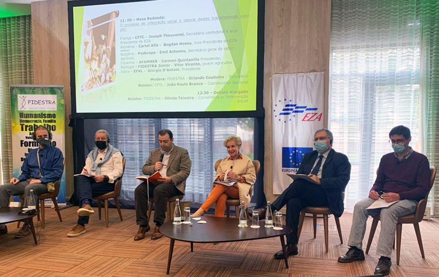 La presidenta nacional de la Asociación de Familias y Mujeres del Medio Rural (AFAMMER) ha analizado la situación laboral de los sectores migrantes del sector primario enmarcada durante el Seminario Internacional que Fidestra y EZA han organizado con el apoyo de la Unión Europea en la ciudad portuguesa de Algarve.