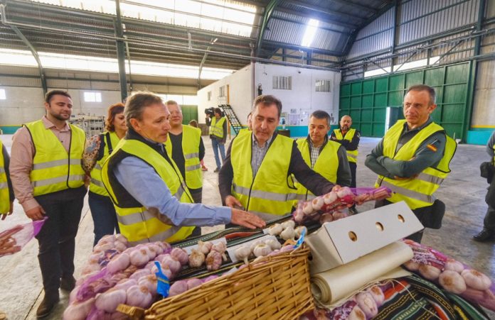 El delegado del Gobierno de España en Castilla-La Mancha, Francisco Tierraseca, ha mantenido este lunes una reunión de trabajo con el alcalde de Balazote, Mateo Simarro, y miembros de la Corporación, en la que han analizado las características de la próxima campaña de recolección del ajo, que comenzará a finales de este mes de abril en el municipio albaceteño.