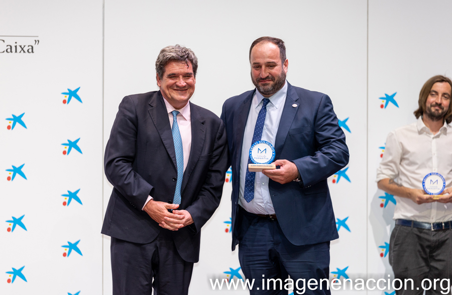 El presidente de Champinter, Elías Olmeda, recogía el reconocimiento este lunes en el auditorio de CaixaForum, en Madrid, durante un acto en el que se entregó el XI Premio Miradas de Fundación Manantial al presentador, monologuista, guionista, actor y streamer Ángel Martín, por su labor de información y concienciación social a través de la publicación de su libro y podcast ‘Por si las voces vuelven’.