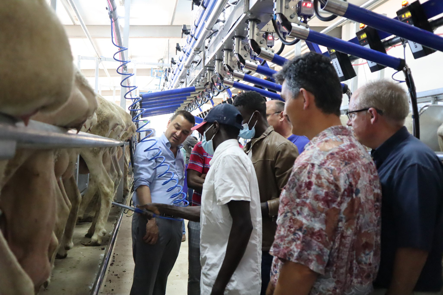 Martínez Arroyo ha estado con los 17 primeros alumnos de esta escuela regional, en una jornada en la cual se han realizado prácticas de ordeño de la oveja manchega.