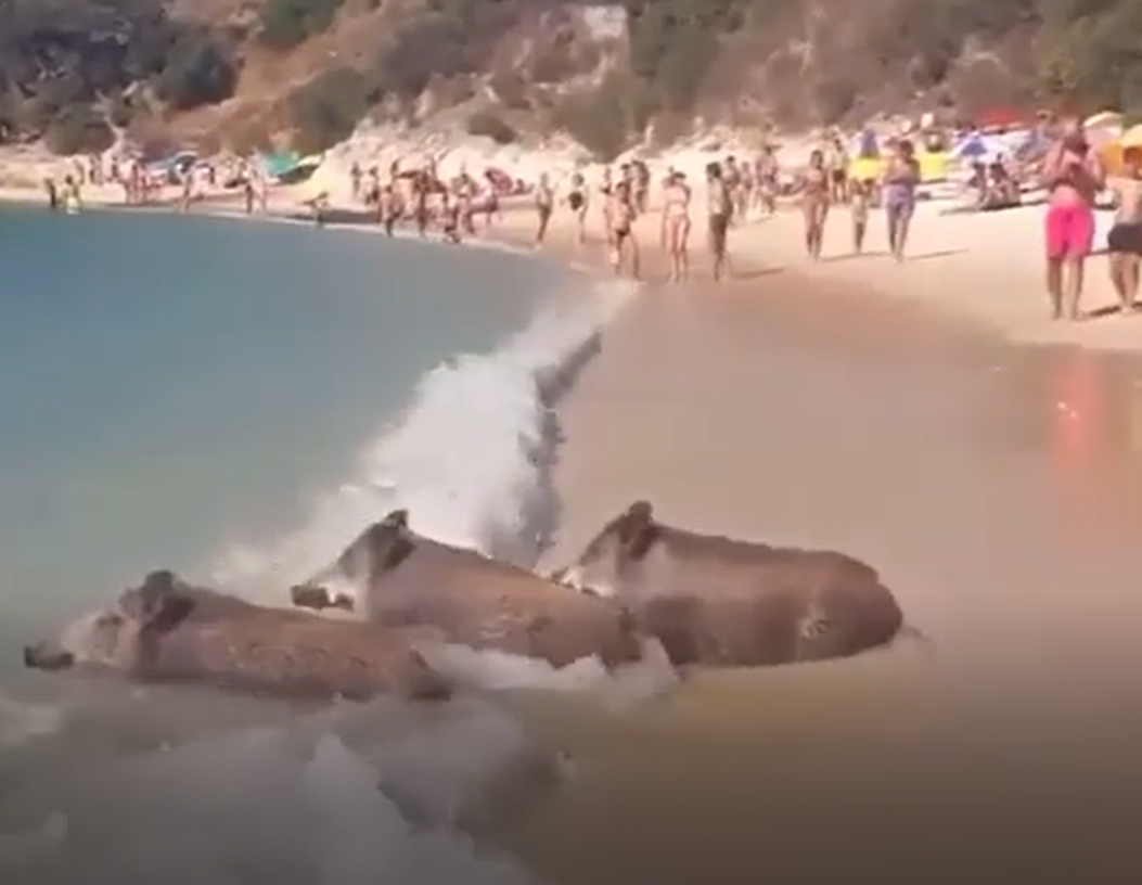 Vídeo. La ola de calor afecta hasta a los jabalíes, que se refrescan en la playa