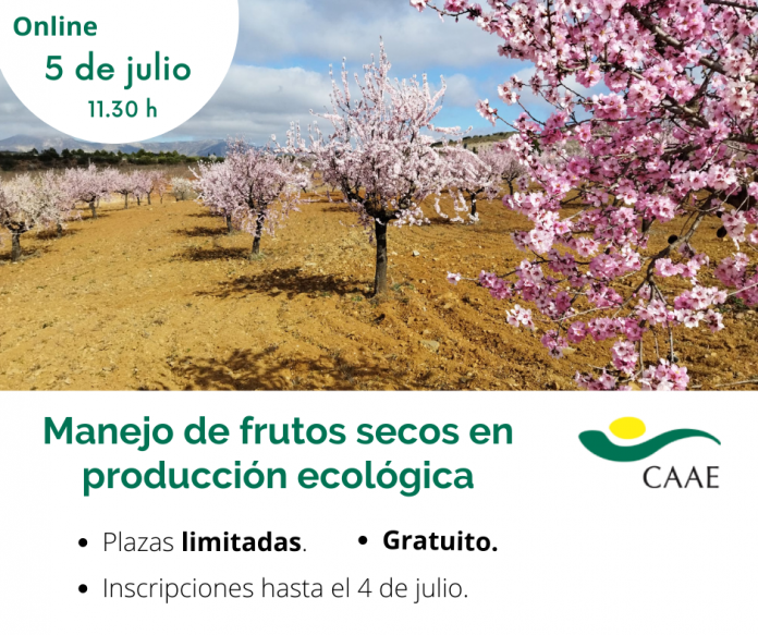 La entidad de certificación CAAE celebrará el martes 5 de julio una jornada sobre el manejo de frutos secos en producción ecológica. En esta sesión se hablará de cuestiones relativas a la rentabilidad de estos cultivos, su manejo, gestión de plagas y enfermedades, así como del proceso de certificación.