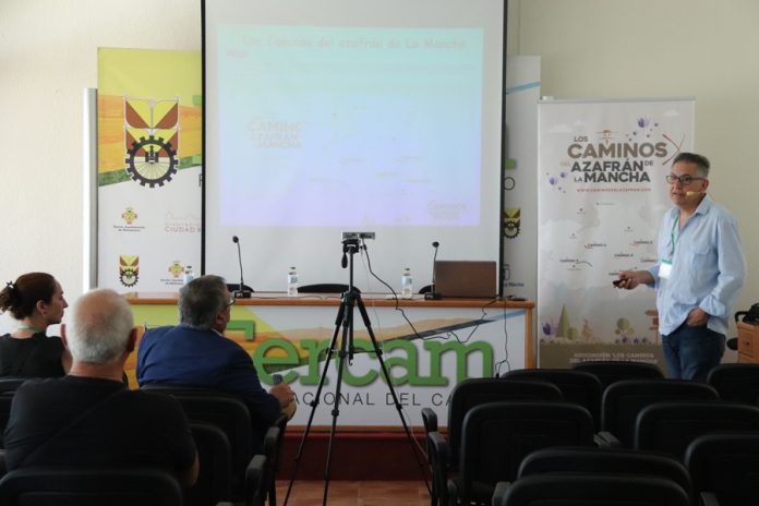 La primera de las tres conferencias técnicas incluidas en el programa de actos de este viernes de la 60ª Feria Nacional del Campo ha servido para dar a conocer el proyecto de la asociación ‘Los Caminos del Azafrán de la Mancha’. Pedro Manuel Pérez, gerente de la fundación del consejo regulador de la DOP Azafrán de la Mancha y conductor de la ponencia, ha señalado que el azafrán con DOP “es un producto único que está estrechamente vinculado a la población, el clima, el territorio, la historia y la etnografía de nuestra región” y que lo que pretende la asociación es “entretejer todos estos elementos en un mapa que contenga el patrimonio arquitectónico, natural y la gastronomía asociados al cultivo de la flor del azafrán y a la elaboración del azafrán de La Mancha”.