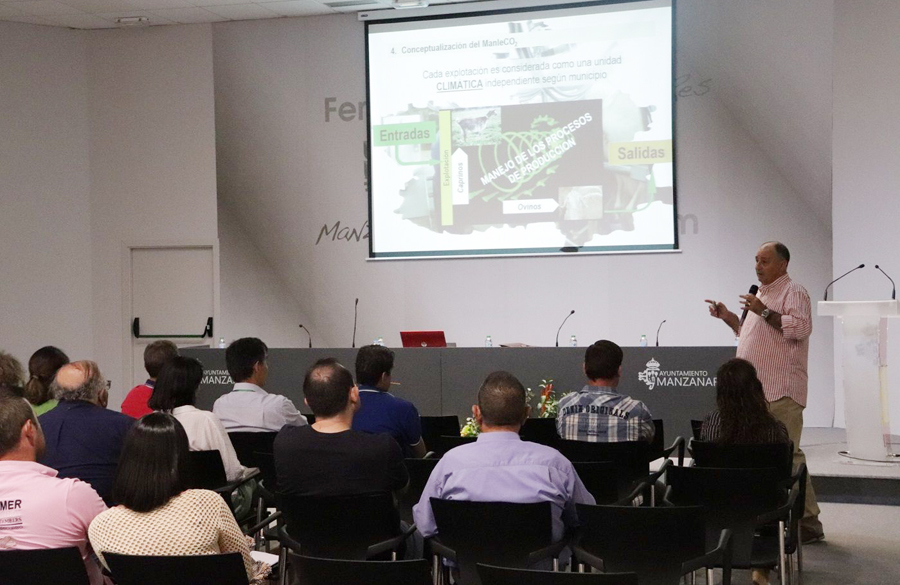 El salón de actos del Pabellón de Muestras de Feria Nacional del Campo (FERCAM), en Manzanares (Ciudad Real) ha acogido este jueves la conferencia: ‘El ManleCO2, una herramienta ambiental al servicio de la ganadería de ovino y caprino en Castilla-La Mancha’. El profesor de Nutrición Animal, Gregorio Salcedo, ha sido el encargado de impartir esta ponencia.