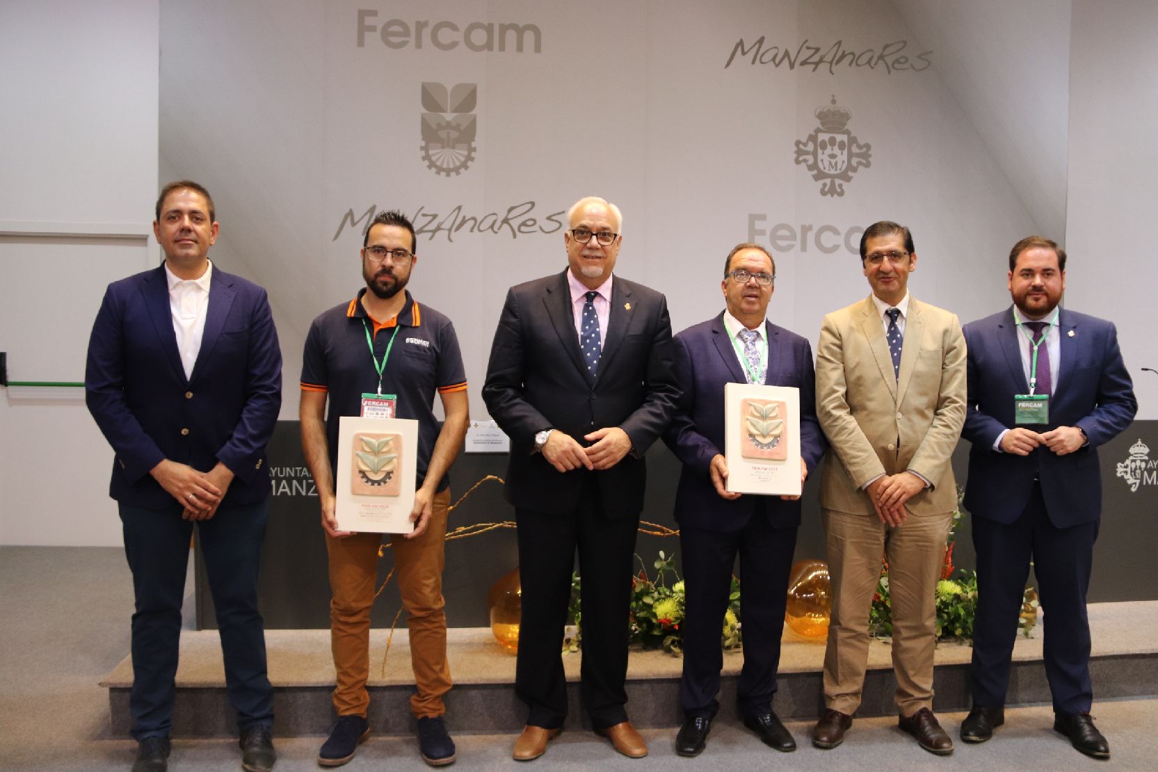 En el acto de clausura de la 60ª Feria Nacional del Campo, Julián Nieva y José Manuel Caballero han entregado las medallas de oro de Fercam a la empresa Agriman como ganadora del premio a la innovación tecnológica por la presentación de las tijeras de poda eléctricas Infaco de última generación; y a Riegos Azuer, por su trayectoria empresarial y fidelidad con esta feria desde hace más de treinta años, distinción que ha recogido y agradecido el presidente fundador de esta empresa, Juan Gómez-Pastrana.