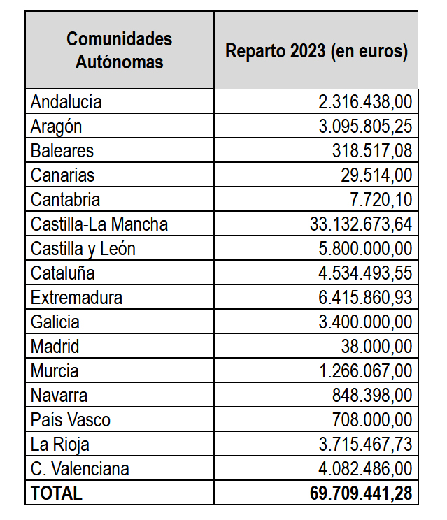 Las cantidades a distribuir por comunidades autónomas son las siguientes:
