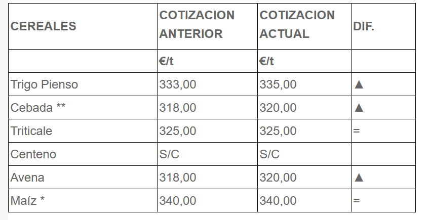 Lonja Agropecuaria de León. Cotizaciones de las mesas agrícola y ganadera 13-07-2022
