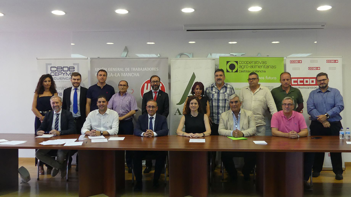 Cooperativas Agroalimentarias de Castilla-La Mancha, CEOE CEPYME Cuenca y ASAJA Cuenca han firmado el primer convenio colectivo de industrias agroalimentarias de la provincia de Cuenca con Comisiones Obreras y UGT, que tendrá vigencia de dos años a partir del 1 de enero de 2023. De este modo se cierra un acuerdo que venía negociándose desde el mes de enero. Este primer convenio engloba a unos cuatro mil trabajadores de la provincia.