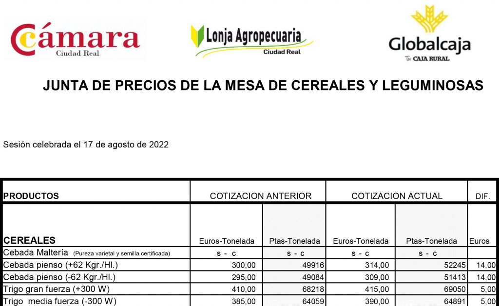 Así, varias lonjas agropecuarias, como la de Ciudad Real, o algunas bodegas publican sus tablillas (listado de precios de la uva ubicada en la entrada de las bodegas receptoras) en euros y su convalidación en pesetas.