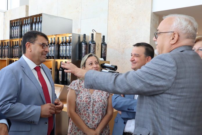 Acompañado por el presidente y el gerente de la cooperativa, Felipe Rodríguez y Ramón Alcarazo, respectivamente, miembros del consejo rector; el alcalde de la localidad, Julián Nieva; la directora general de Alimentación, Elena Escobar; y la delegada provincial de Agricultura, Agua y Desarrollo Rural, Amparo Bremard; el consejero ha podido comprobar el proceso de constante modernización en el que se encuentra inmersa esta cooperativa, donde, en los últimos años, se ha ampliado la bodega o se han realizado mejoras en los procesos de elaboración y embotellado, ampliando la embotelladora para orientar la producción “a lo que los consumidores demandan”.