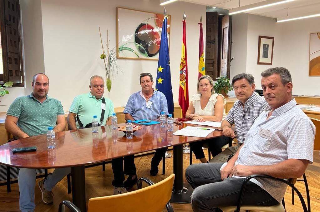 El secretario general de la Unión de Pequeños Agricultores y Ganaderos de Castilla-La Mancha, Julián Morcillo, junto a otros representantes de la organización agraria en Valdepeñas, se han reunido en Toledo con la directora general de Alimentación de la Consejería de Agricultura, Agua y Desarrollo Sostenible, Elena Escobar, para abordar la presente campaña de vendimia.