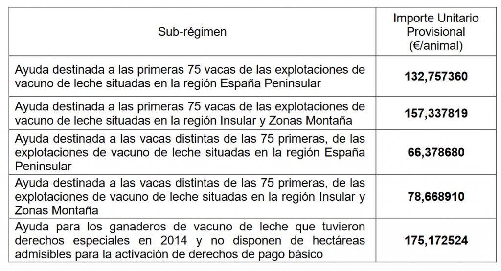 Par las ayudas asociadas para las explotaciones de vacuno de leche se diferencian dos líneas de subvención, según se trate de explotaciones situadas en la región España Peninsular o en la región Insular y Zonas de Montaña.